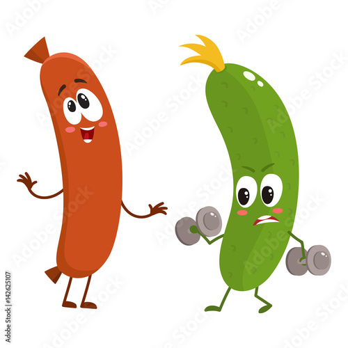 Funny Food Characters Zuccini Versus Sausage Healthy