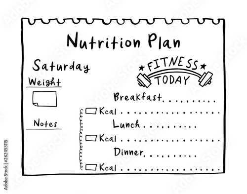 Hand Drawn Diet Plan In Doodle Style For Breakfast Lunch